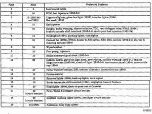 Can someone please upload a picture of the 1994 fusebox diagram, the one thats inside the car.