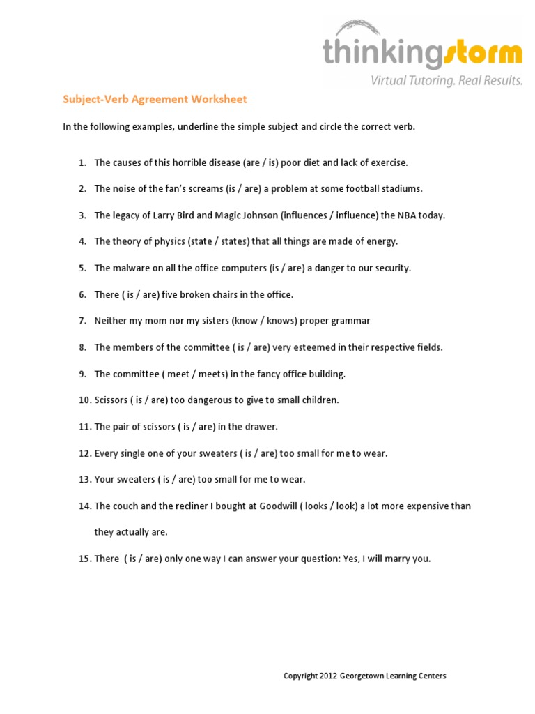 Subject Verb Agreement Worksheet Pdf : 4+ subject verb agreement worksheets 8th grade | Purchase ... / Here is a graphic preview for all the kindergarten, 1st grade, 2nd grade, 3rd grade, 4th grade, and 5th grade subject verb agreement worksheets.. Subject verb agreement is basic part of english grammar. Too and enough verb patterns verb phrase verb tenses verbs: A verb is used to. Welcome to esl printables, the website where english language teachers exchange resources: Either mary or alice is responsible for this.